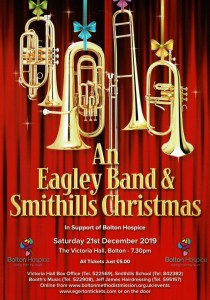 For the fourth consecutive year, the Eagley Band and Smithills Community Band and Choir Christmas Concert in aid of Bolton Hospice takes place on the nearest December Saturday to Christmas Day. We can’t wait! This year the date is Saturday December 21st at 7.30pm, so once again we are fortunate not to be clashing with the Grand Final of BBC1 “Strictly Come Dancing” which finishes the previous Saturday.