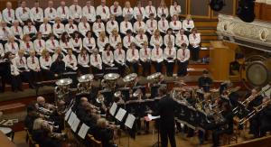 On Saturday evening December 21st we took to the Victoria Hall stage in Bolton once again in front of the Mayor of Bolton, the Chair of Bolton Hospice and hundreds and hundreds of Boltonians who packed into the hall to watch our latest Eagley and Smithills Community Music gala concert.Our programme included lots of audience participation in the traditional carols and, of course, the obligatory finale of The Twelve Days of Christmas with lots of organised fun and invited chaos within the choir, massed bands and audience!
