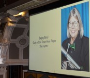A special presentation of flowers and engraved cut glass was made by our MD Chris Wormald to Eagley Solo Horn player and Chair of the Committee Deb Lyons who celebrates 40 years as a member of Eagley Band this year. Over the last 40 years Deb has held virtually every role on the Band Committee and sat in all three seats within the horn section! As a further surprise for Deb, her official band photo was displayed on the screen above the stage, which drew huge applause from the audience in which the Mayor of Horwich, Councillor Steven Chadwick, was the VIP guest of honour.