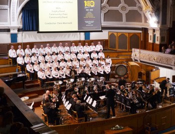 On Saturday night October 15th we took to the stage at the Victoria Hall in Bolton once again and with Community Choir and Community Band we celebrated 100 years of Rotary clubs existing in Bolton. Concert organiser Graham Yardley obtained a fantastic sponsorship from RRG Bolton Toyota, who parked a brand new car outside the front entrance to the concert hall, and thanks to great posters, various articles in the Bolton News and our MD appearing as a guest on local radio programmes, we attracted the largest Victoria Hall audience of many hundreds of people since the return from lockdowns. It was a fantastic night!