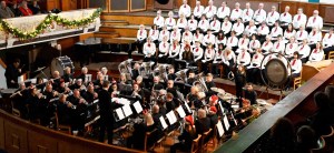 As the hundreds and hundreds of people filed into the hall from 6.45pm to provide us with yet again our biggest audience of the year, even on a bitterly cold night with snow and ice outside, it was clear that there was going to be a great atmosphere in the hall, which was certainly the case. From the opening notes of Gordon Langford’s iconic A Christmas Fantasy at 7.30pm through to the closing notes of We Wish You A Merry Christmas at just after 9.45pm, the audience was treated to an eclectic evening of seasonal repertoire ranging from well known Christmas music and carols to perhaps the less well known, with items ranging from ‘Do You Hear What I Hear?’ and ‘It’s The Most Wonderful Time of The Year’ to ‘Gaudete’ and ‘The Chronicles of Narnia’