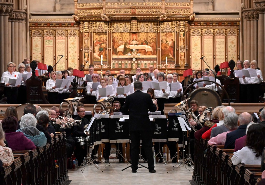 On Saturday evening April 1st we held our annual Spring Concert in the huge and stunning Bolton Parish Church for the first time. What an amazing concert and audience it attracted too, with the church packed, all three adjoining car parks full to overflowing and two former Mayors of Bolton in attendance. Even with many members of the band, Community Choir, Community Band and audience all heading off down to Wembley Stadium in London very early the following morning to watch Bolton Wanderers beat Plymouth and win the EFL Trophy, the church was packed.