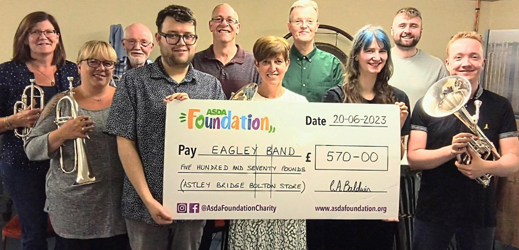 Earlier this month we at Eagley Band applied to local Community Liaison Christine Baldwin of the Asda Foundation based at their Astley Bridge store, requesting the Foundation’s help to purchase new music stands for our massed concerts with Community Band.