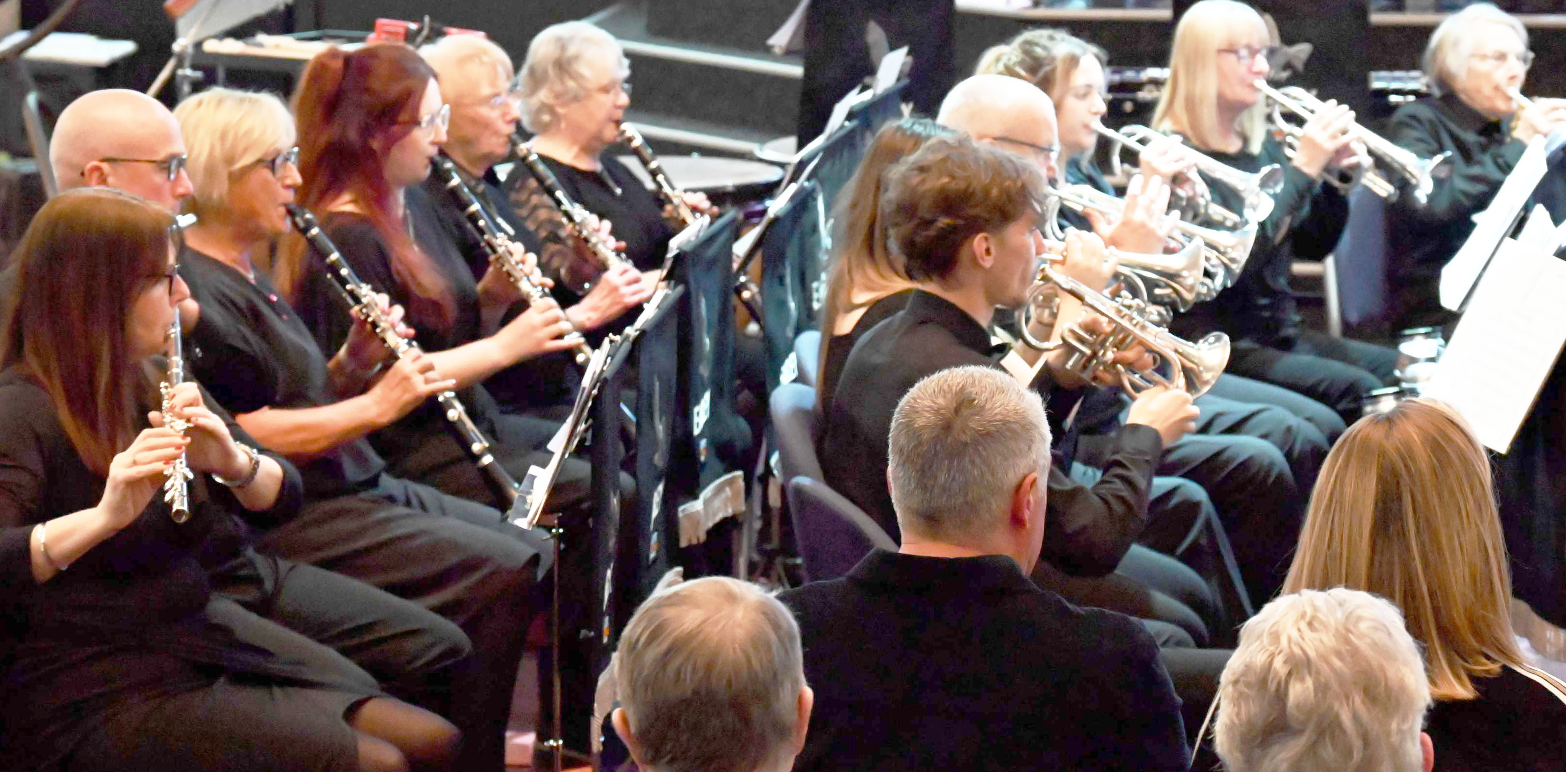 The concert began with a crackling performance of the march Knight Templar featuring Cornet players Lynsey Hayes (Principal) and Hollie Lancaster, and this was immediately followed by Bohemian Rhapsody, remarkably celebrating half a century since its 1975 release and record breaking stay at No.1 in the charts. Excellent contributions by Deb Lyons (Horn), Janet Walsh (Flugel), Laura Hemmings (Euphonium) and our superb percussion section (Leo Turner-Patel, Dom Patel and Sophie Dunlevy) were rightly rewarded by the audience and the concert moved straight into two more 1975 hits, Barry Manilow’s Even Now and I Write The Songs. Even Now featured our Flugel Horn quartet of Lynsey Hayes, Sarah Ferguson, Hollie Lancaster and Janet Walsh who all played superbly as ever in another brand new arrangement made especially for the concert by our MD.