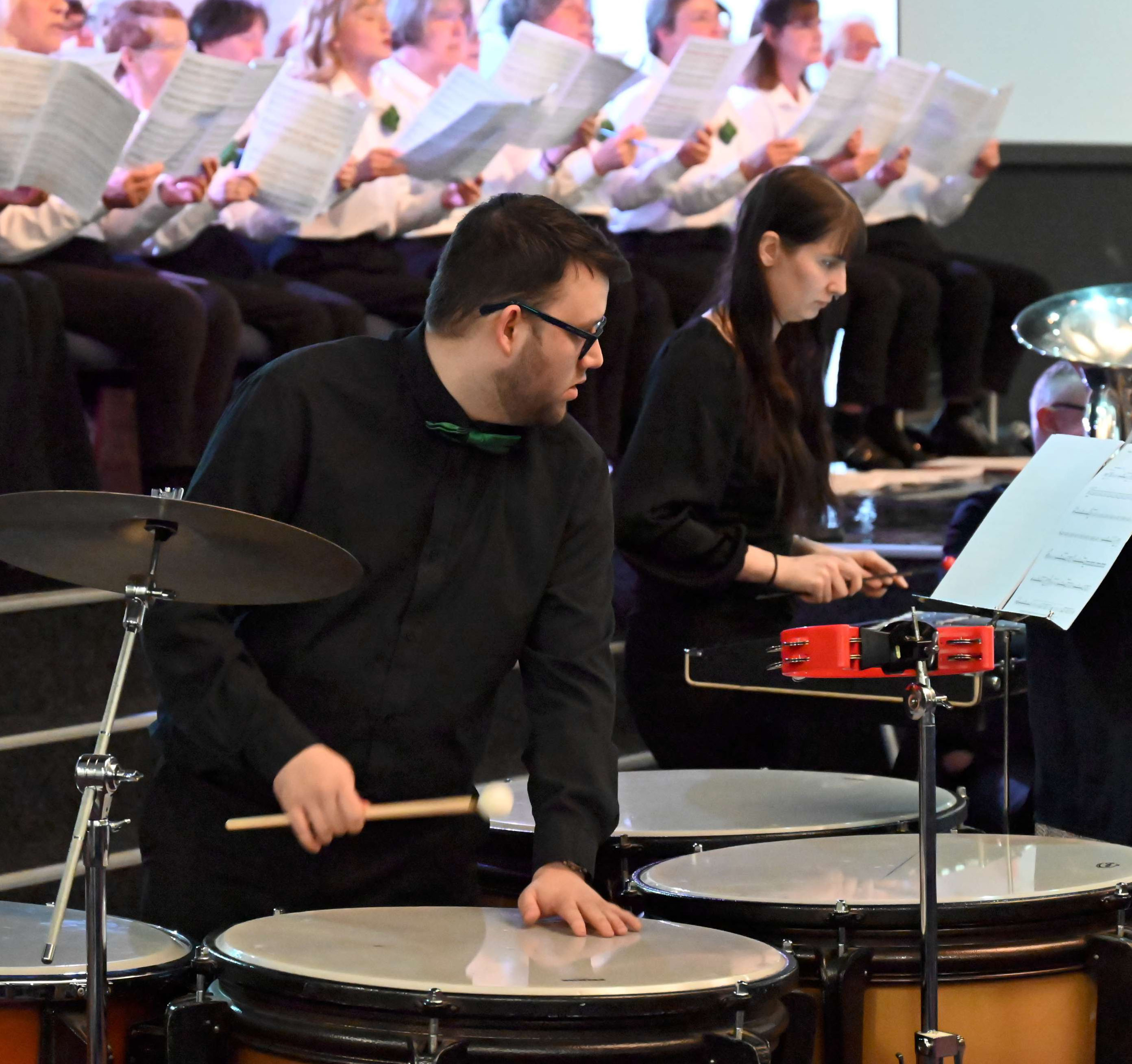 As always, our Community Choir contributed superbly throughout the whole evening and after the interval, our Community Band joined the full Eagley Band throughout, with ever-present Tenor Horn player Tom Fraser now an amazing 95 years of age in our concert celebrating years and the number five. It is remarkable to think that such a good Horn player as Tom is was born in August 1929.