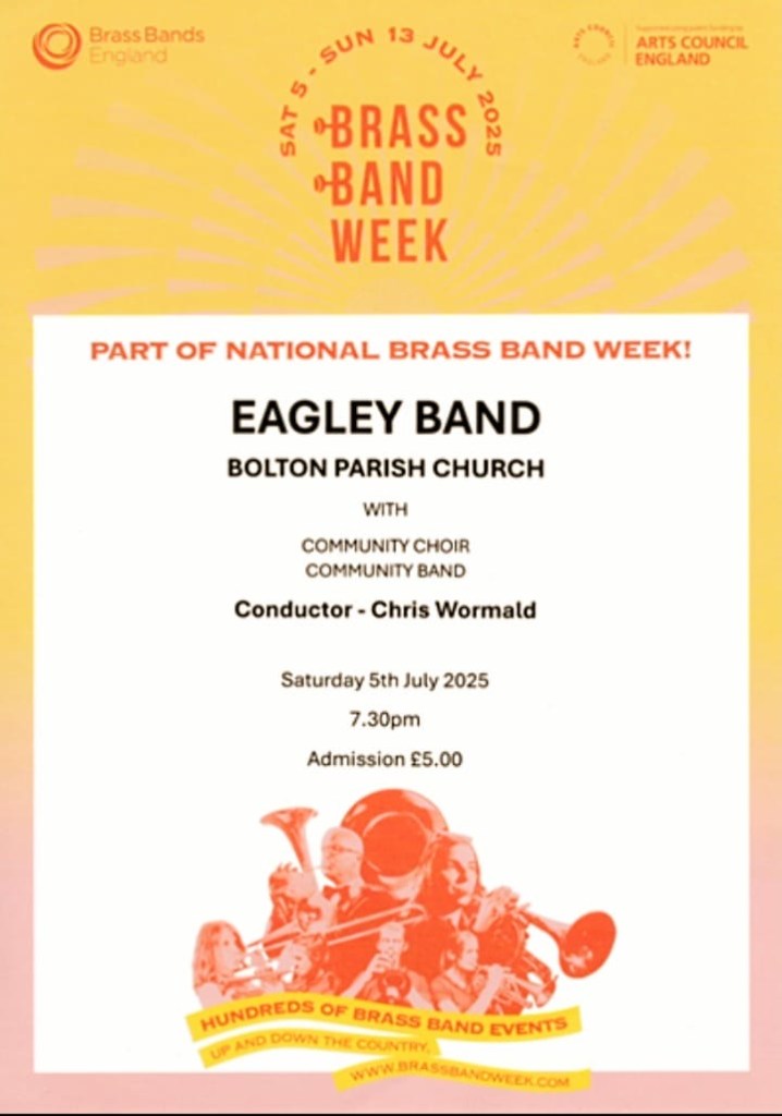Brass Band Week is an annual event launched by Brass Bands England in 2024 to raise awareness of our nation’s brass bands. Our summer concert on the 5th July is listed as one of hundreds of brass band events during this week. If you wish to order tickets leave us a message via our contact page .