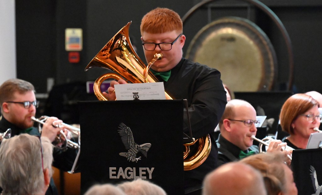 Our loyal audience enjoyed another very successful Eagley visit and, as ever, our combined Eagley Band, Community Choir and Community Wind Band were all conducted by MD Chris Wormald who introduced the evening’s pieces. Our Principal Cornet Lynsey Hayes also treated the audience to a few bars of Nessun Dorma as it was exactly 100 years to the very evening, April 25th 1926, when Nessun Dorma was given its first ever performance in the opera Turandot.